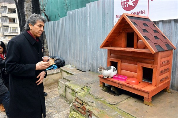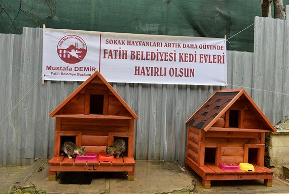 Belediye, ilçenin farklı noktalarına kurduğu “Kedi Evleri” ile sokak kedilerini koruma altına aldı. Kedilerin bütün ihtiyaçlarının belediye tarafından karşılanacağını belirten Fatih Belediye Başkanı Mustafa Demir, “Onların hizmeti sadece lojistik desteklerini sağlamak değil, onların temel ihtiyacı yemekleri kadar sevgiye ihtiyaçları var” dedi.