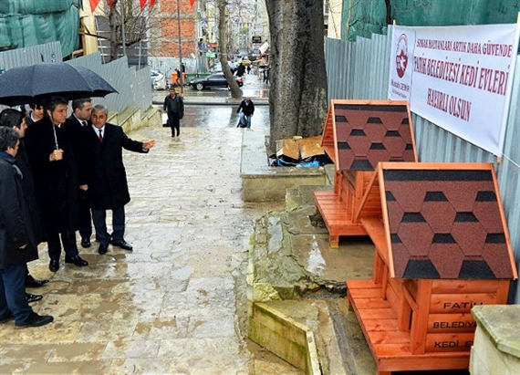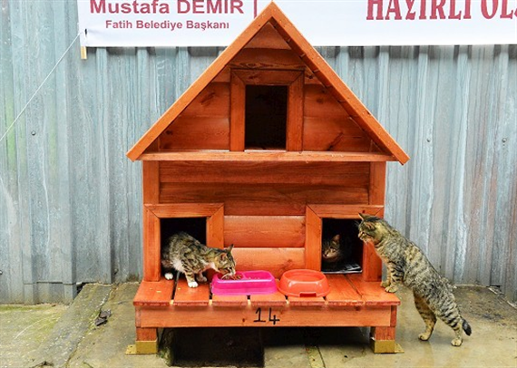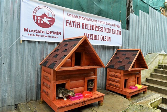 Fatih Belediyesi sokak kedileri için örnek bir projeye imza attı. Belediye, ilçenin 24 farklı noktasına yerleştirdikleri “Kedi Evleri” ile sokak kedilerini koruma altına aldı. Özel ahşaptan yapılan evlere yerleştirilen kediler hem soğuk havalardan korunacak, hem de sağlıklı bir ortamda yaşama fırsatı bulacak. Fatih Camii önüne yerleştirilen kedi evlerini bizzat yerinde inceleyen Fatih Belediye Başkanı Mustafa Demir, belediyenin kedilerin her türlü sağlık, yeme, içme ihtiyacını bu evlerde karşılanacağını söyledi.
