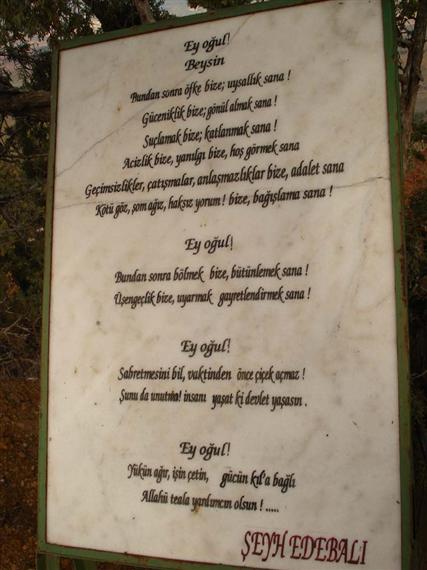 İnsanlar vardır, şafak vaktinde doğar, akşam ezanında ölürler. Dünya, senin gözlerinin gördüğü gibi büyük değildir. Bütün fethedilmemiş gizlilikler, bilinmeyenler, ancak senin fazilet ve adaletinle gün ışığına çıkacaktır. Ananı ve atanı say! Bil ki bereket, büyüklerle beraberdir. Bu dünyada inancını kaybedersen, yeşilken çorak olur, çöllere dönersin. Açık sözlü ol! Her sözü üstüne alma! Gördün, söyleme; bildin deme! Sevildiğin yere sık gidip gelme; muhabbet ve itibarın zedelenir...