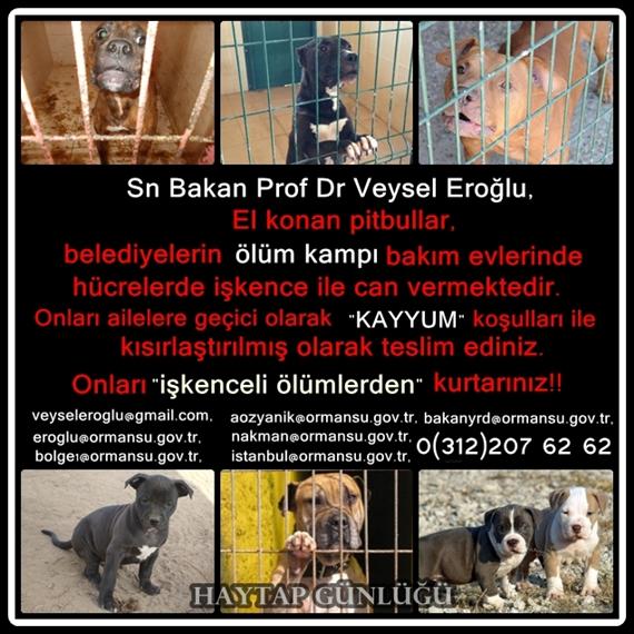 Ormanı, çevreyi ve doğayı koruma amacı ile kurulmuş olan bakanlığınızın, köpek türünün en çok zulüm gören ve şanssız grubu olan başta "pitbull" ve benzeri köpekler için de onların yaşam haklarını da koruyacak UYGAR ve VİCDANİ yaklaşımı sergileyeceğinize inanıyoruz.