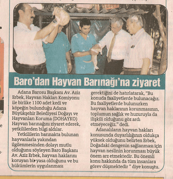 ADANA BARO'SUNDAN DOHAYKO HAYVAN BARINAĞINA ZİYARET HÜRRİYET ÇUKUROVA GAZETESİ